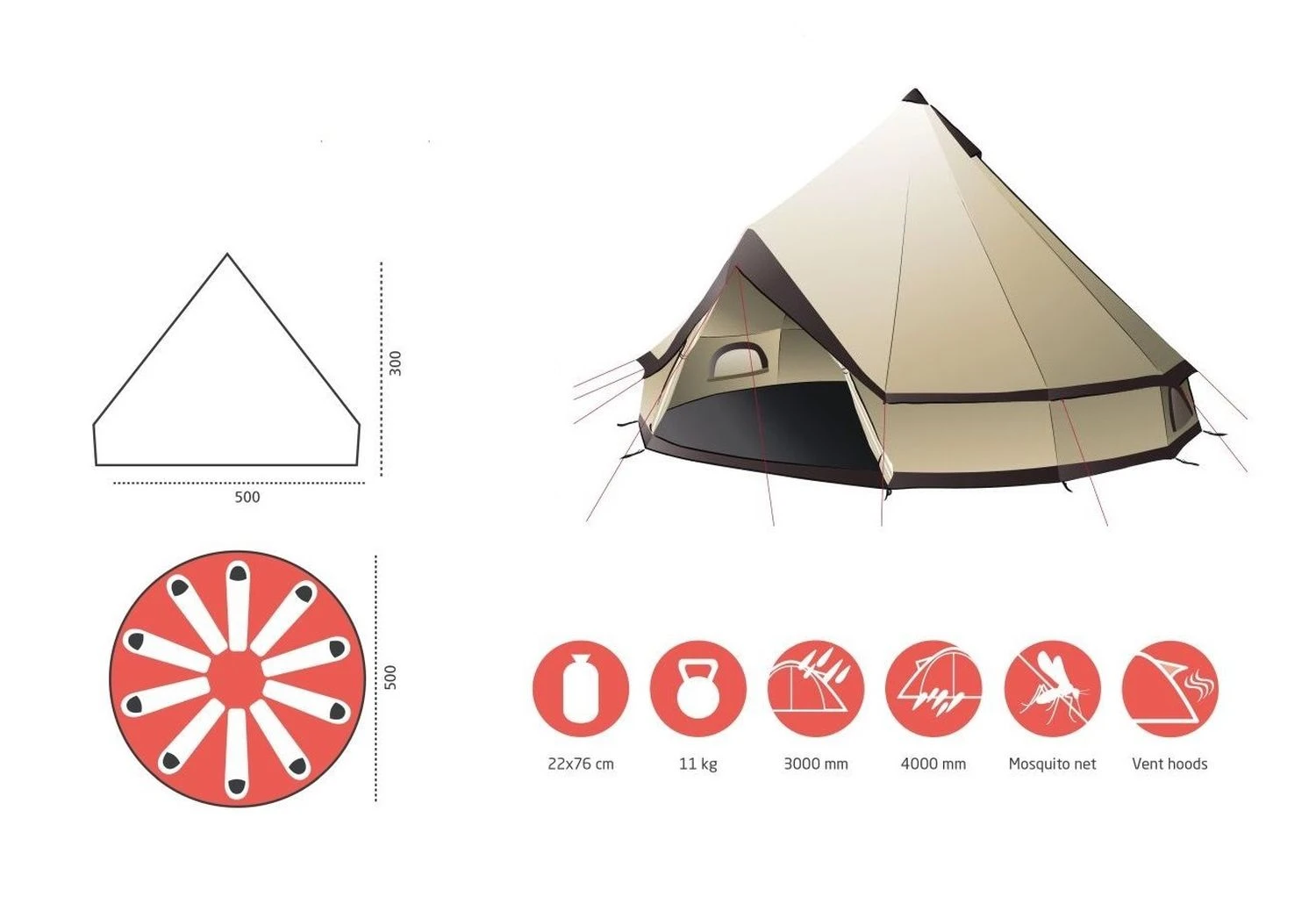 – Stehhöhe im mittleren Zeltbereich