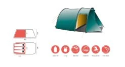 Wen Platz die größte Rolle spielt. ROBSON 3 ist der perfekte Begleiter für Ihre nächste Rad- oder Kanutour. Dank der einheitlichen Höhe im Innenzelt und in der Apsis bietet das Zelt ausreichend Platz für drei bis vier Personen im Schlafbereich und viel Platz für Ausrüstung und Gepäck in der Apsis. ROBSON 3 hat eine hervorragende Windbeständigkeit an der Längsseite. Die Moskitonetze am Innenzelt und die großen Belüftungsöffnungen mit Abdeckung auf der Außenplane sorgen für eine hervorragende Luftzirkulation und ein stets angenehmes Raumklima im Innenzelt.