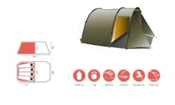 Noch größer! Im Inneren kann man durchgängig fast stehen. Tolles Raumgefühl. Ausreichend Platz für vier bis fünf Personen im Schlafbereich und viel Stauraum für Ausrüstung und Gepäck in der Apsis. Das Robson 4 von Grand Canyon hat eine hervorragende Windbeständigkeit an der Längsseite. Die Moskitonetze am Innenzelt und die großen Belüftungsöffnungen mit Abdeckung auf der Außenplane sorgen für eine hervorragende Luftzirkulation und ein stets angenehmes Raumklima im Innenzelt.