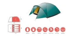 Sie brauchen mehr Platz? TOPEKA 4 ist der große Bruder von TOPEKA 2 und TOPEKA 3. Es ist wesentlich größer, bietet ausreichend Platz für vier bis fünf Personen und verfügt über die gleichen Eigenschaften wie die anderen Modelle. Die große Apsis vor dem Innenzelt bietet zusätzlichen Stauraum für Gepäck oder Ausrüstung. Hervorragendes, anpassbares Innenklima dank der neuen GrandFlow-Belüftung an der Außenplane. Das Innenzelt kann bei trockenem Wetter separat aufgestellt werden. Toll für Rad-, Kajak- und Campingausflüge am Wochenende.